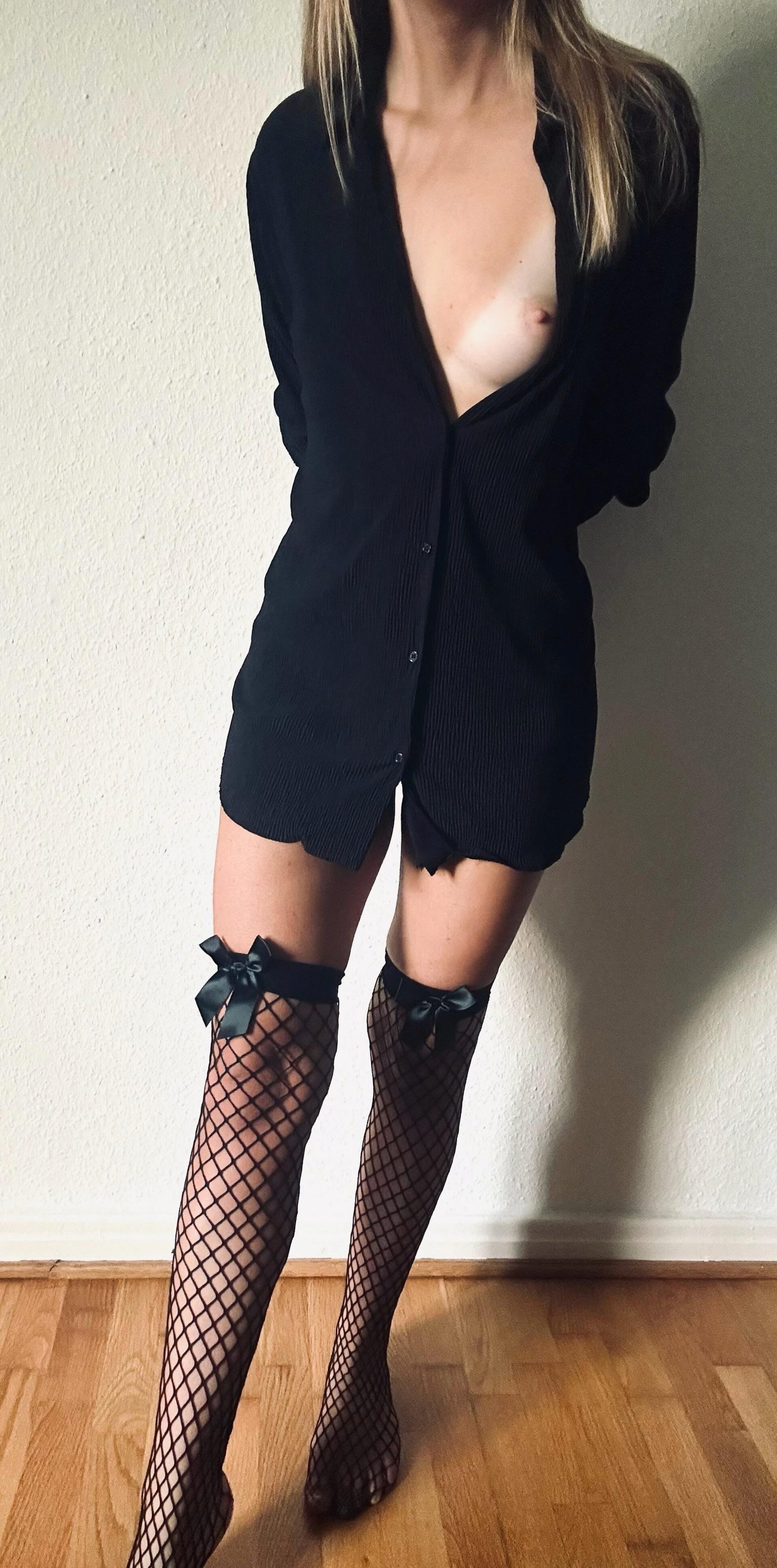 Bereit fürs Büro in meinem schwarzen Strümpfe-Outfit