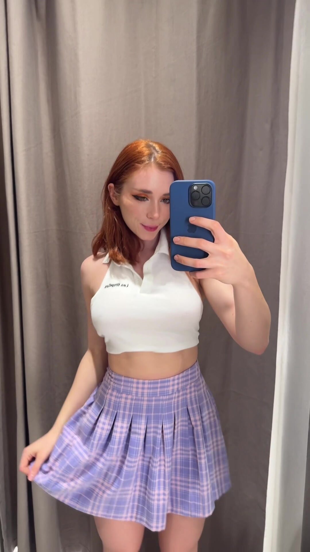 Rothaarige entblößt ihre Titten in der Umkleidekabine